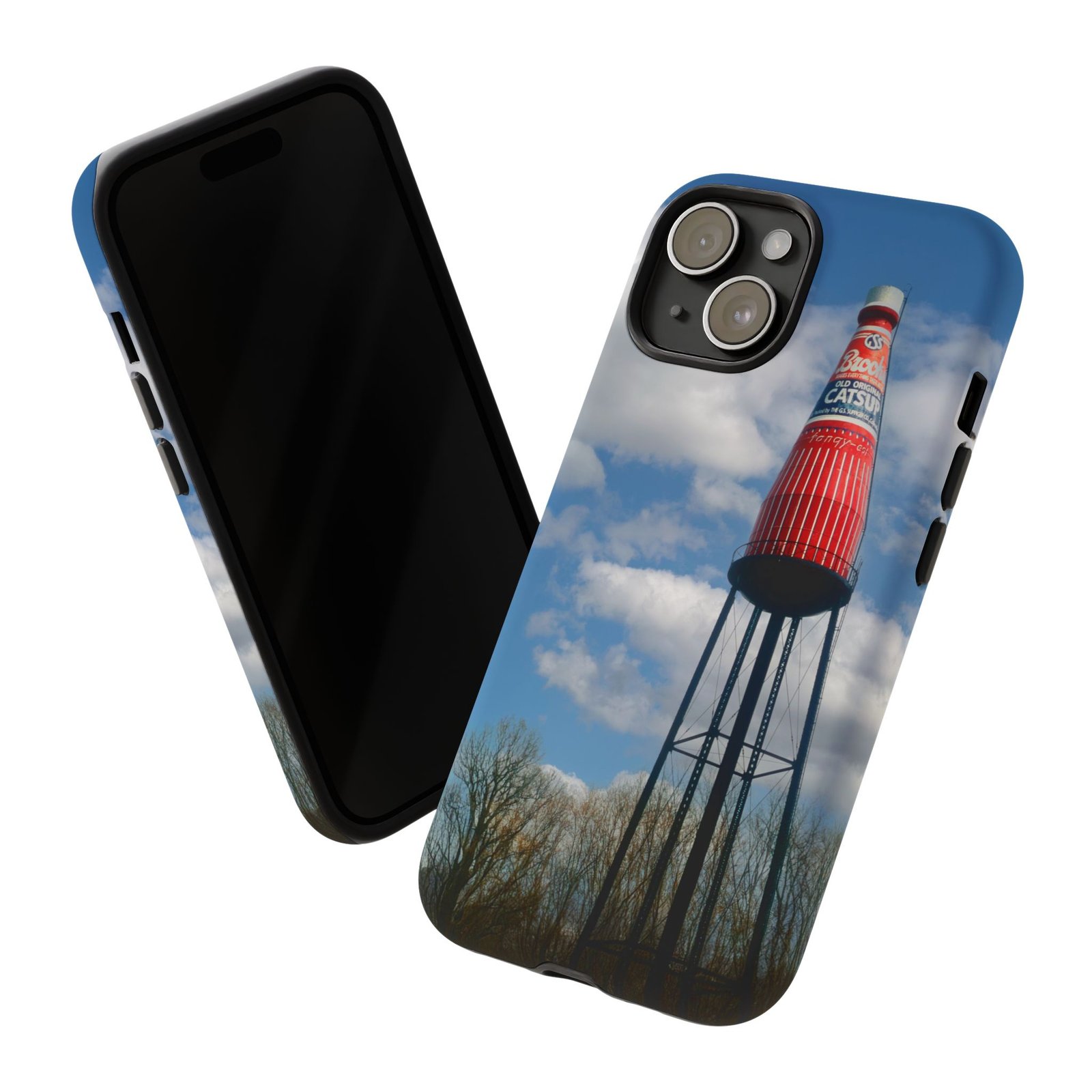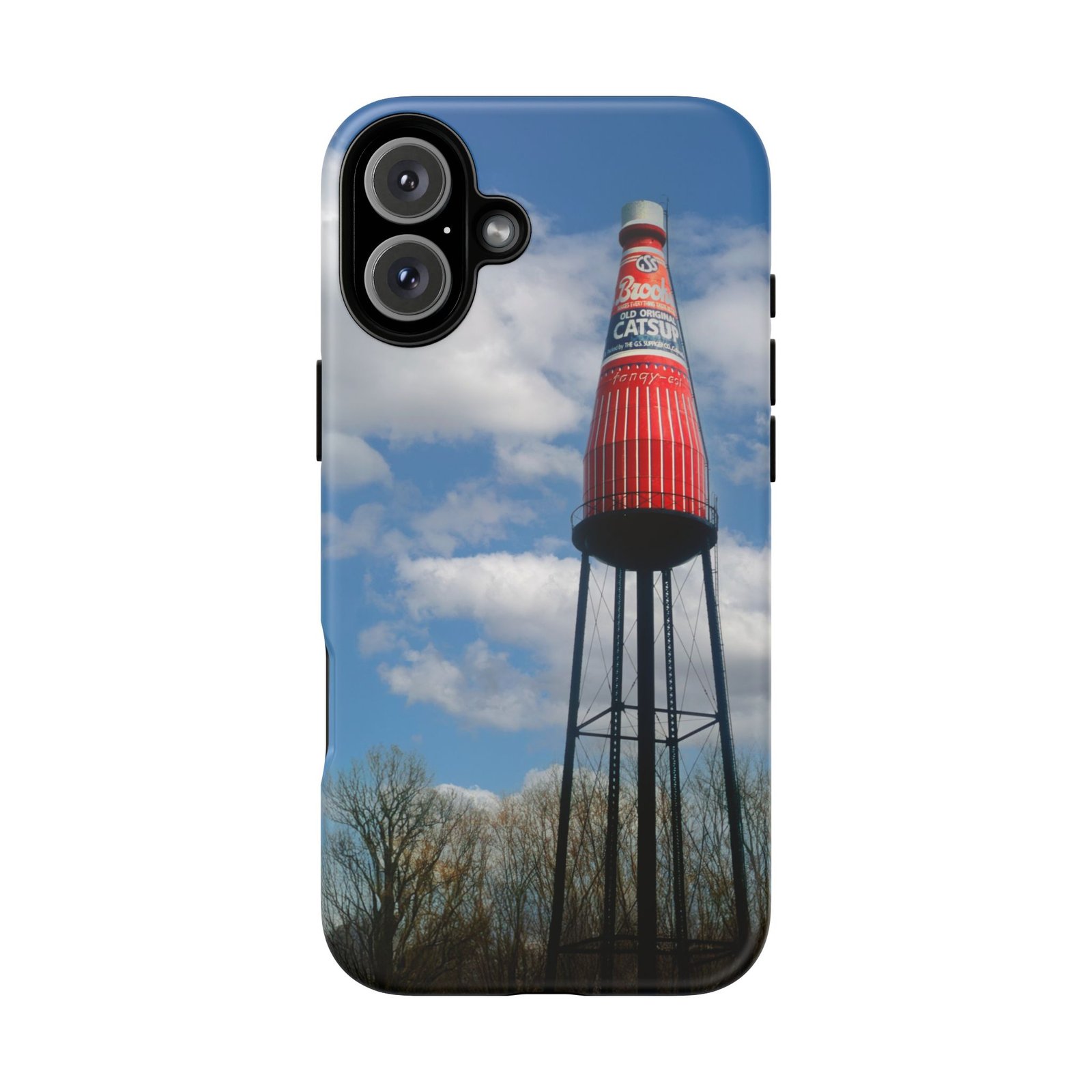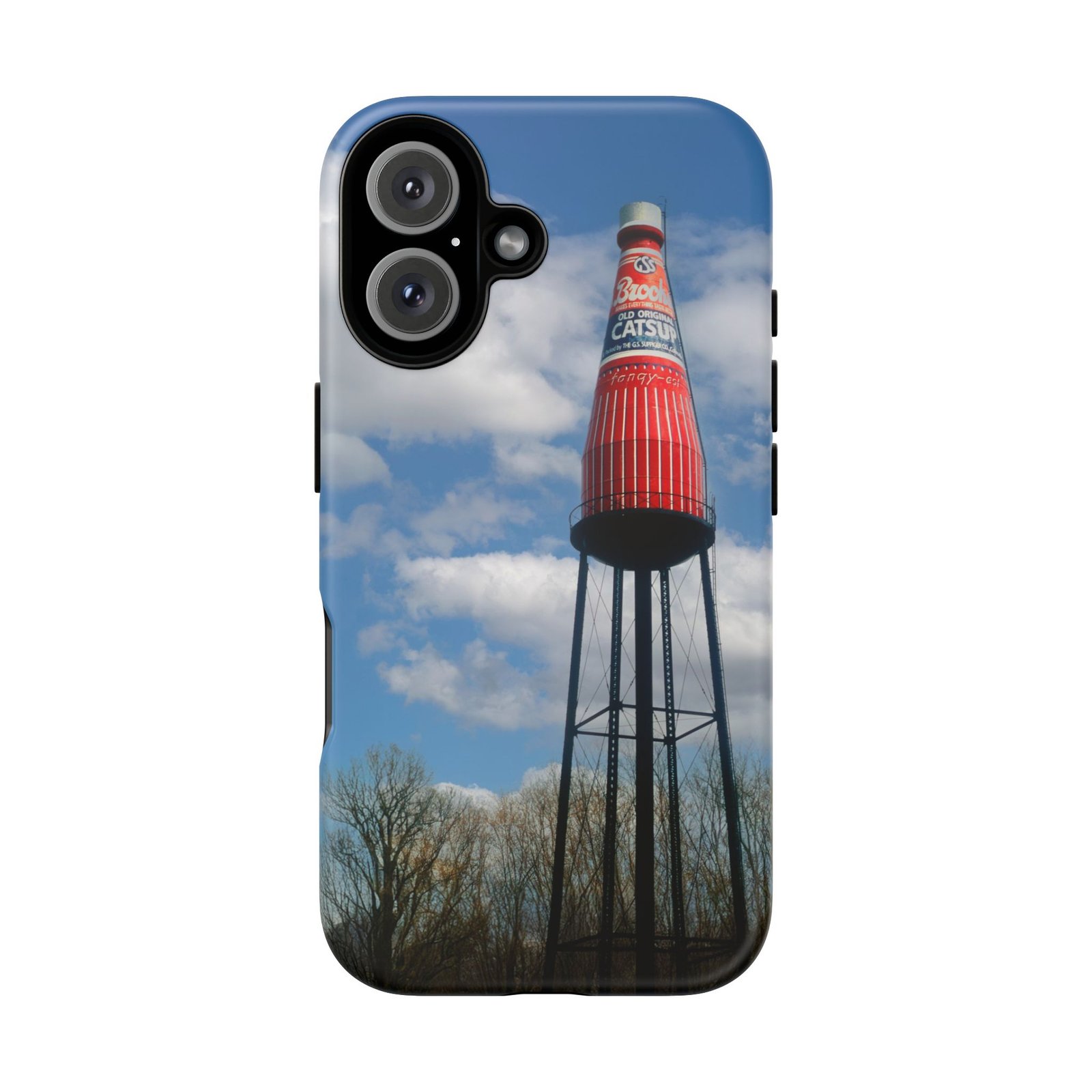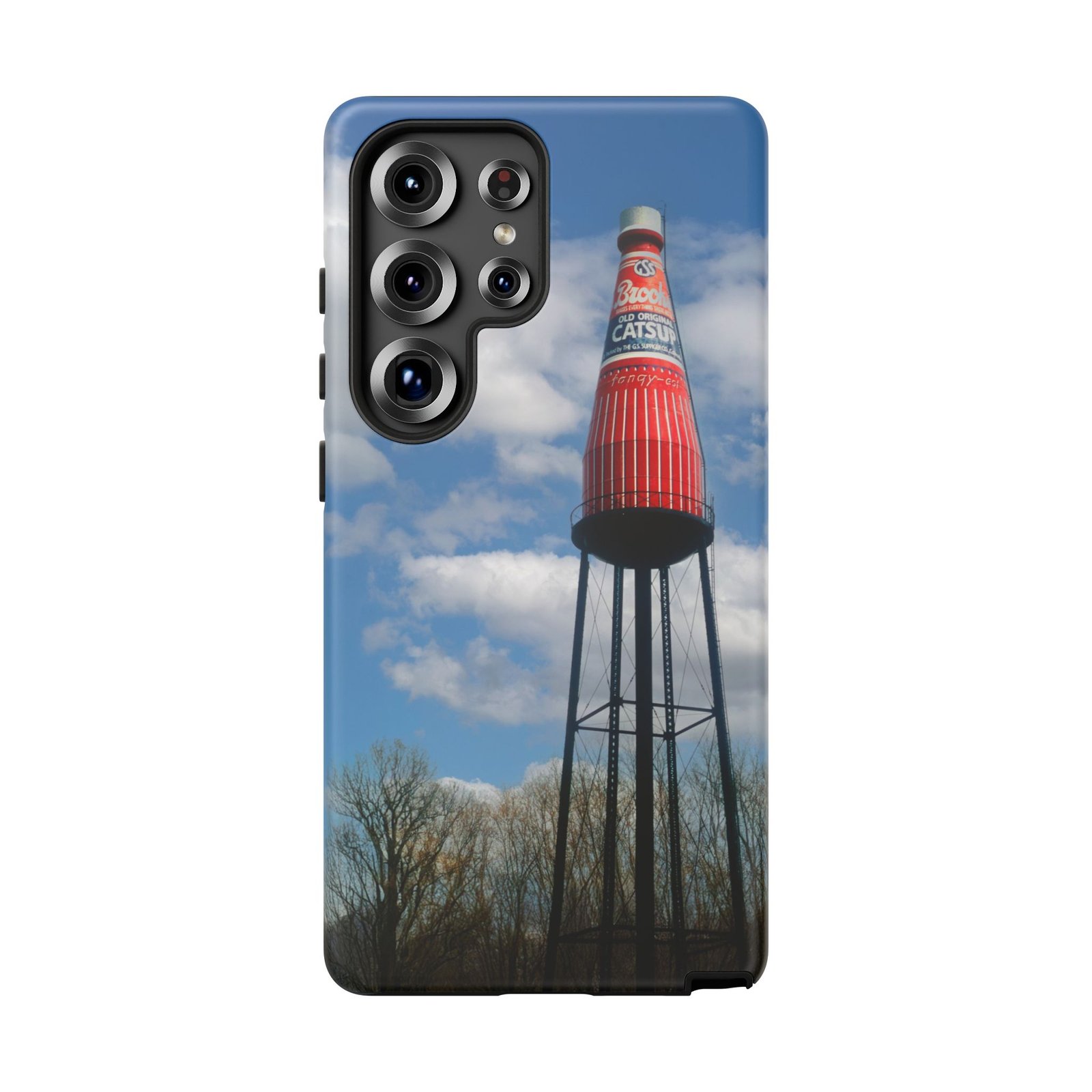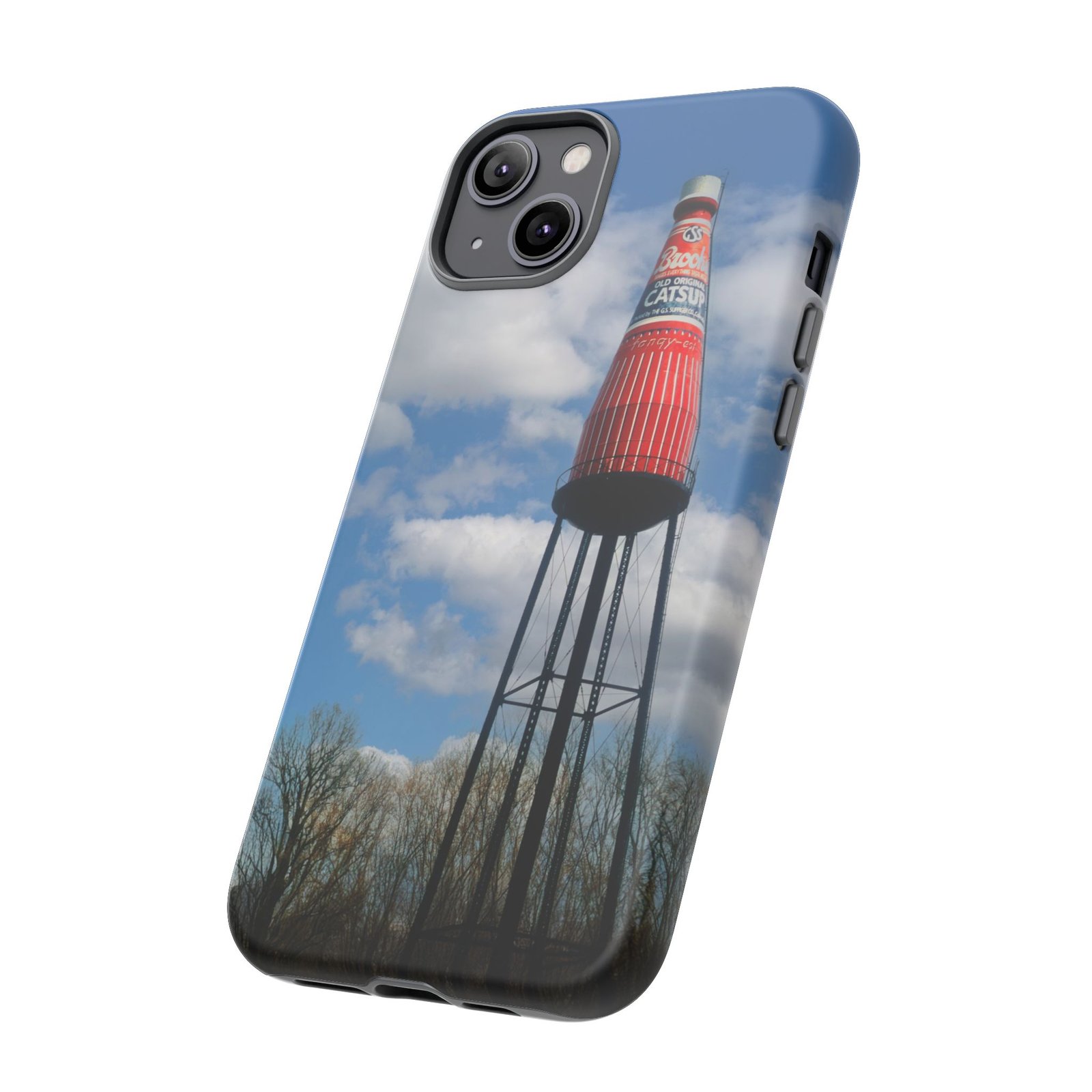Ketchup Bottle Water Tower Design Phone tough phone case, iPhones and Samsung Galaxy phones, providing excellent protection against drops and tears. Perfect for adults looking to add a fun and quirky touch to their phone. Ideal for gifting on birthdays, holidays, and special occasions.