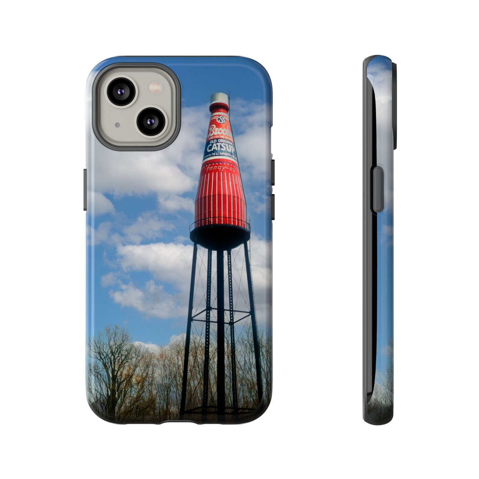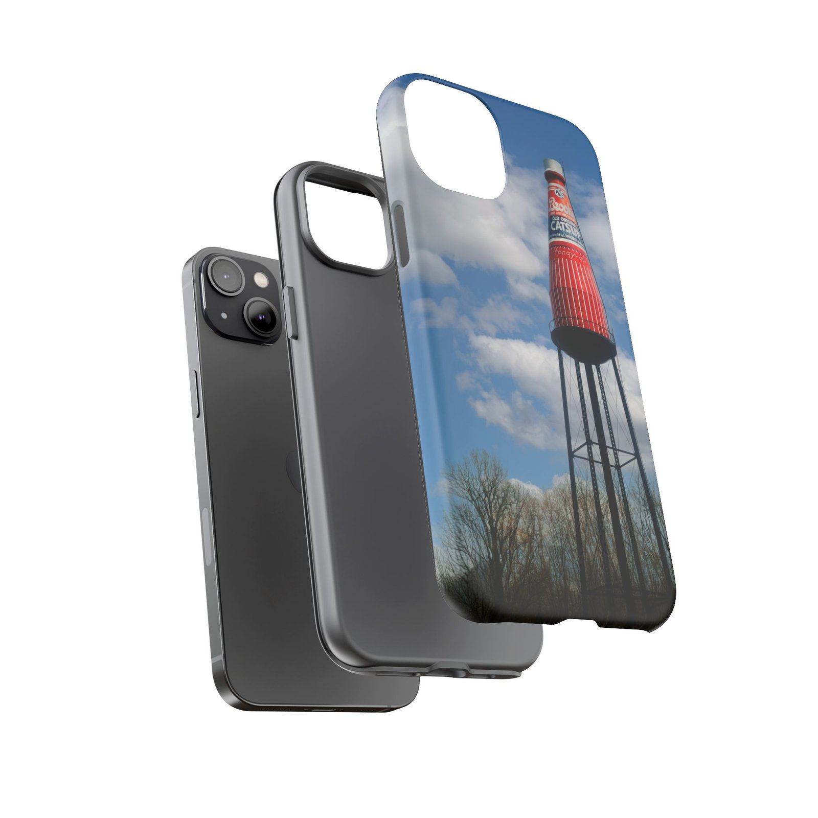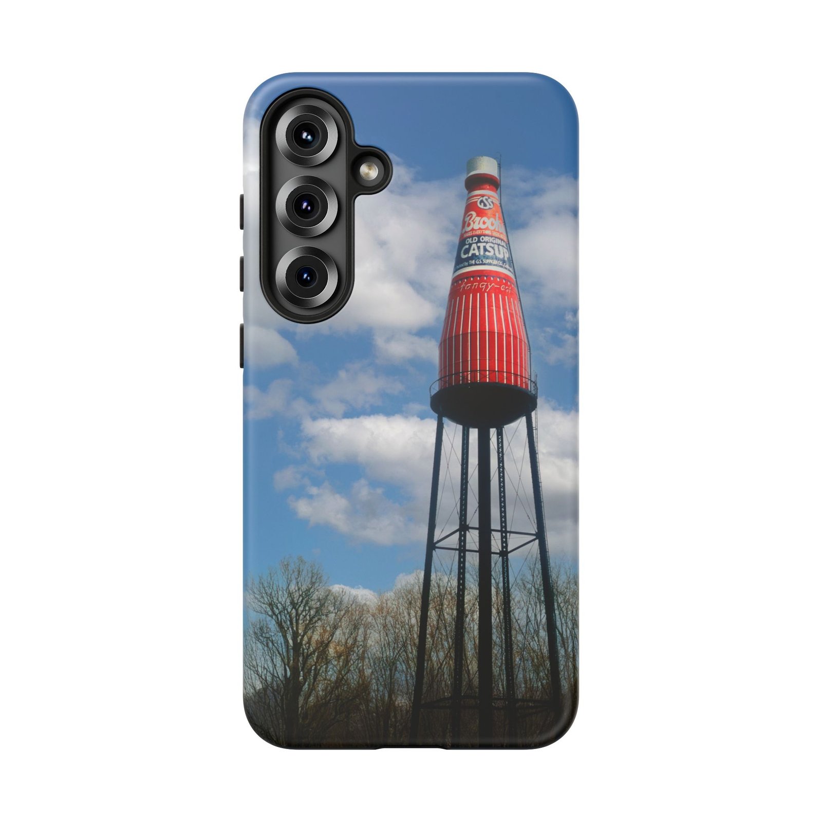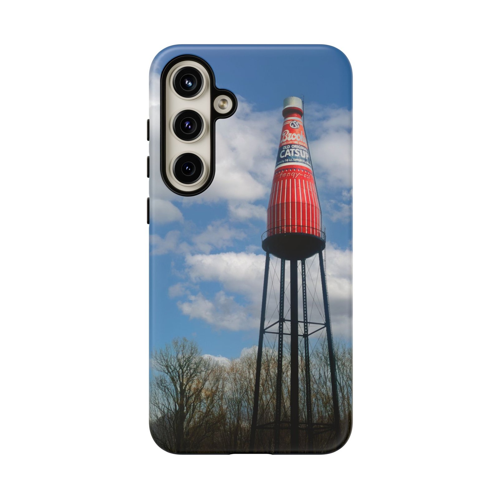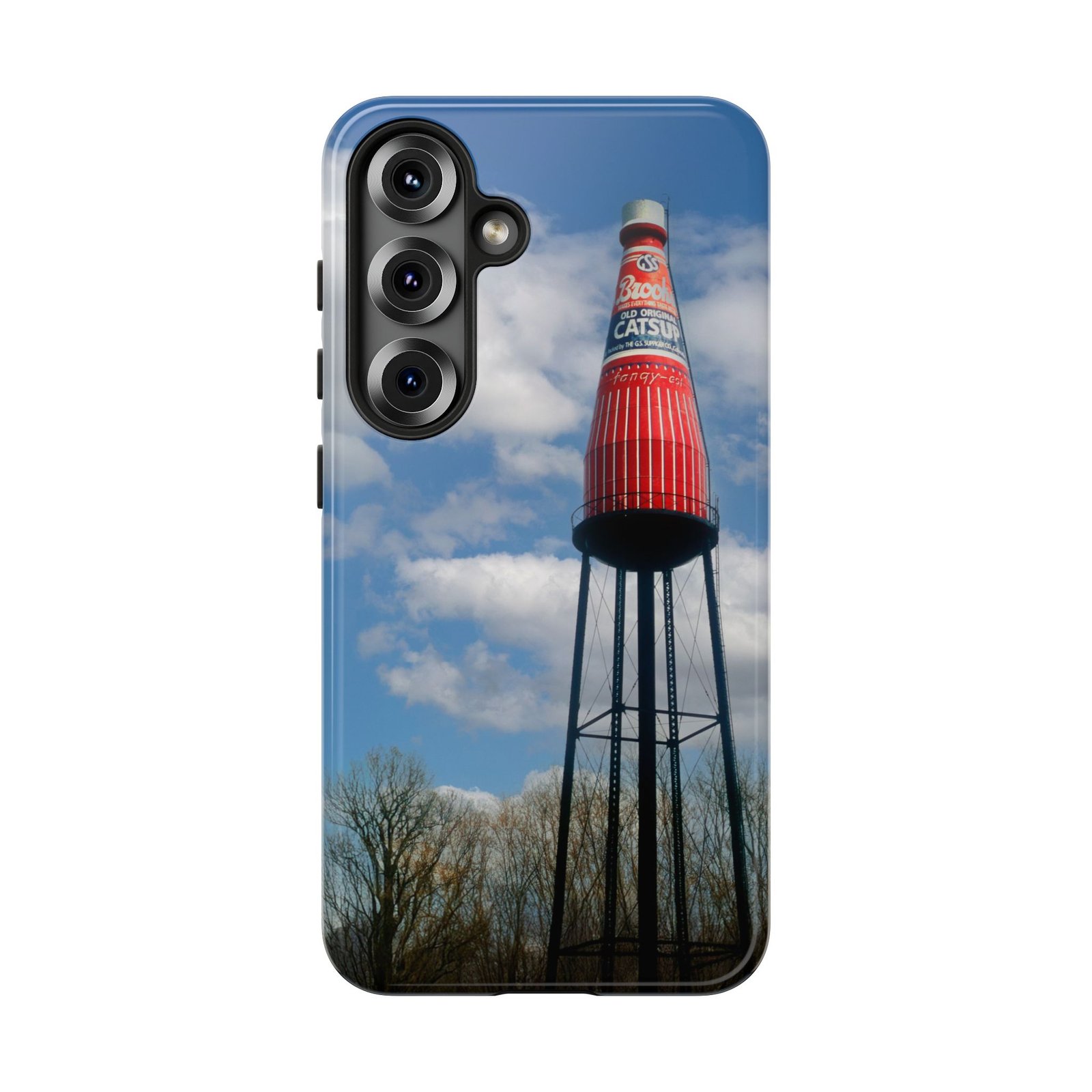 Ketchup Bottle Water Tower Design Phone tough phone case, iPhones and Samsung Galaxy phones, providing excellent protection against drops and tears. Perfect for adults looking to add a fun and quirky touch to their phone. Ideal for gifting on birthdays, holidays, and special occasions.