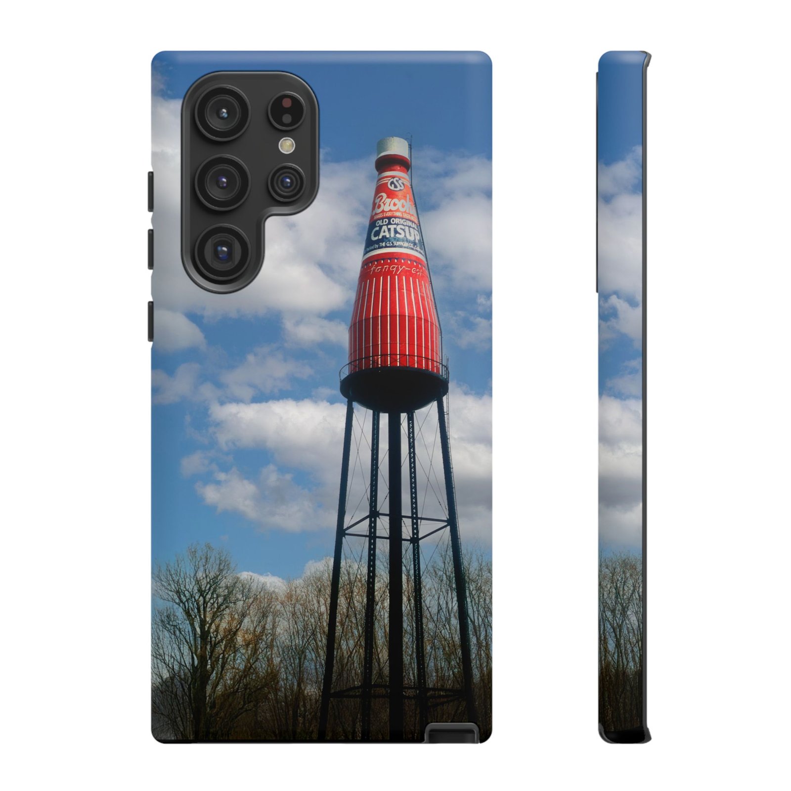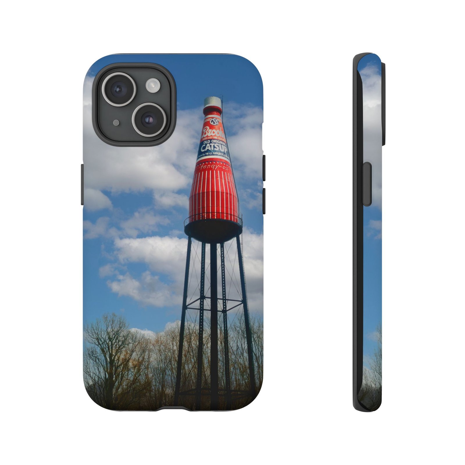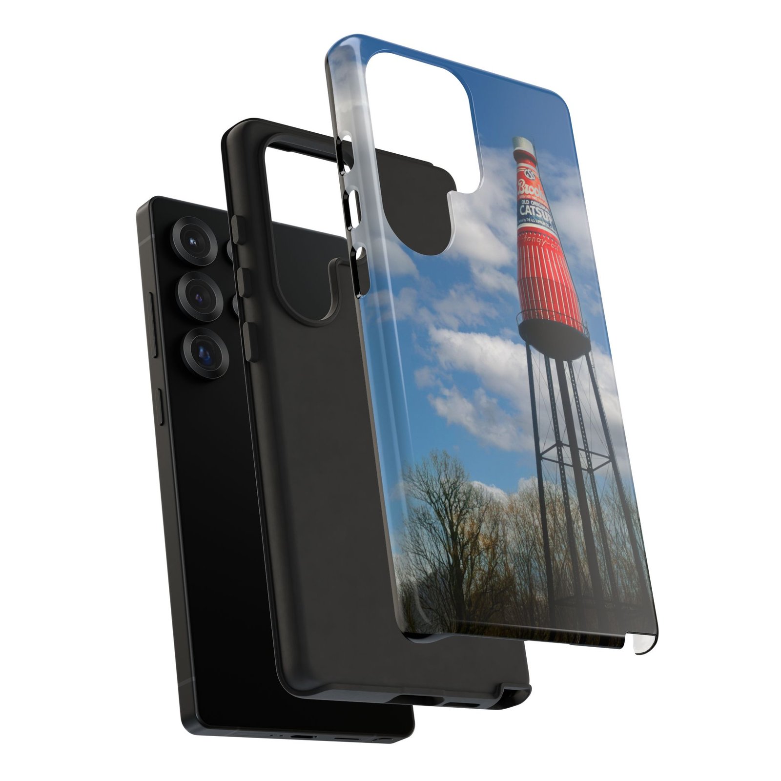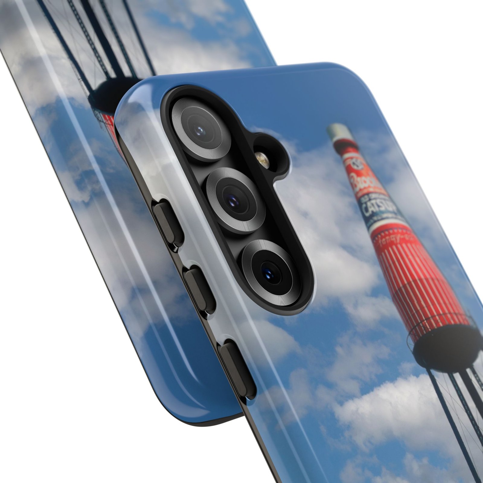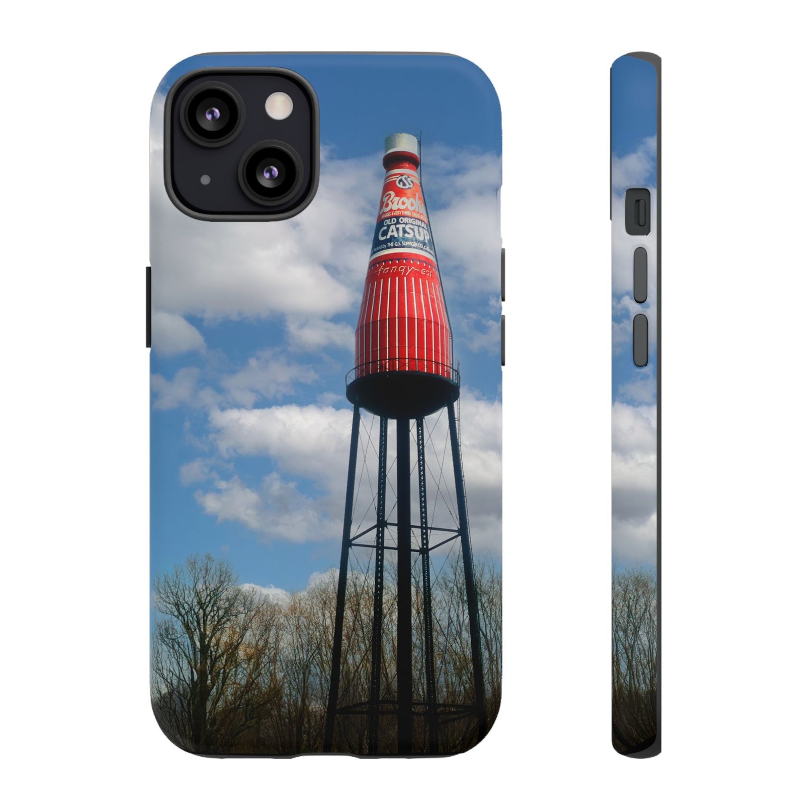 Ketchup Bottle Water Tower Design Phone tough phone case, iPhones and Samsung Galaxy phones, providing excellent protection against drops and tears. Perfect for adults looking to add a fun and quirky touch to their phone. Ideal for gifting on birthdays, holidays, and special occasions.