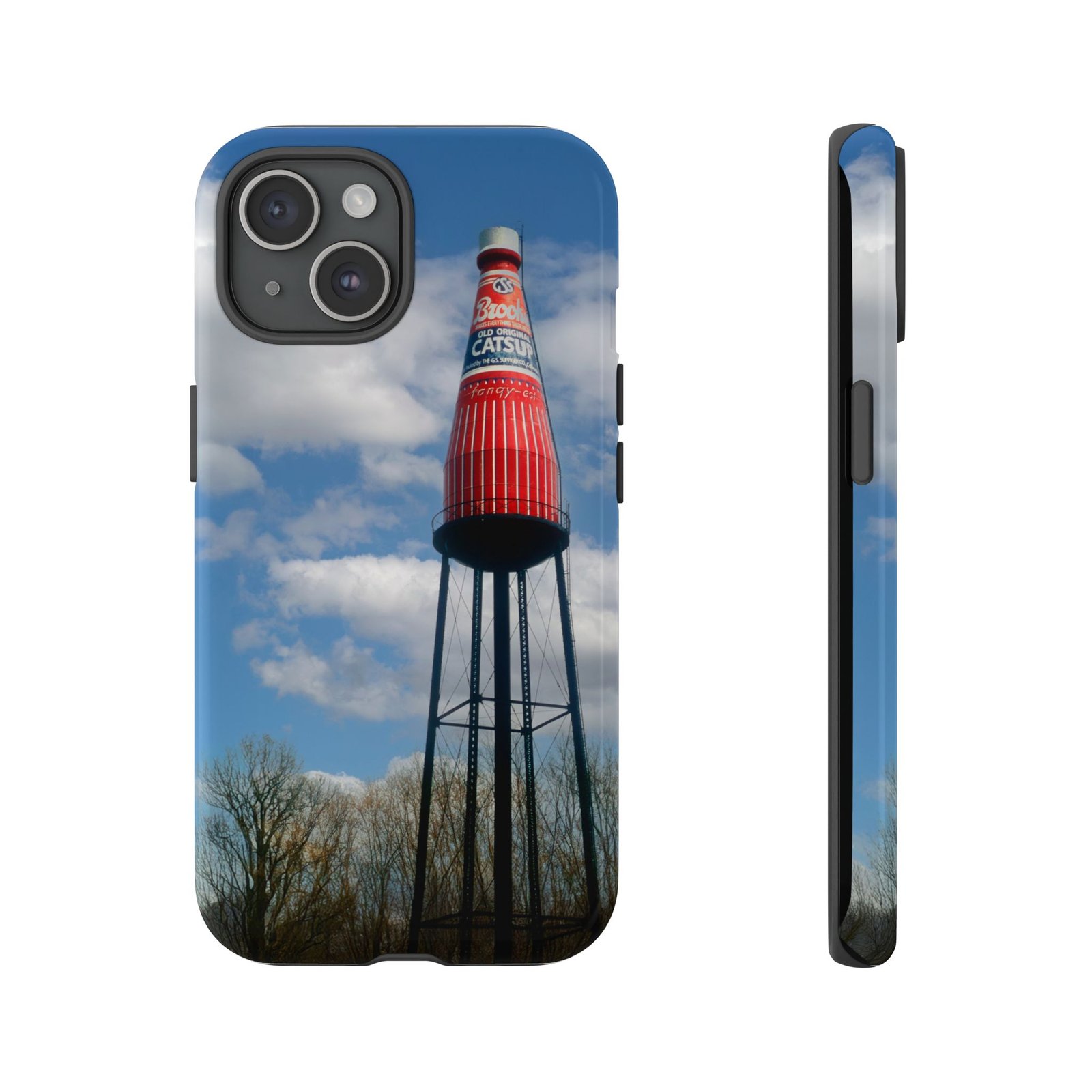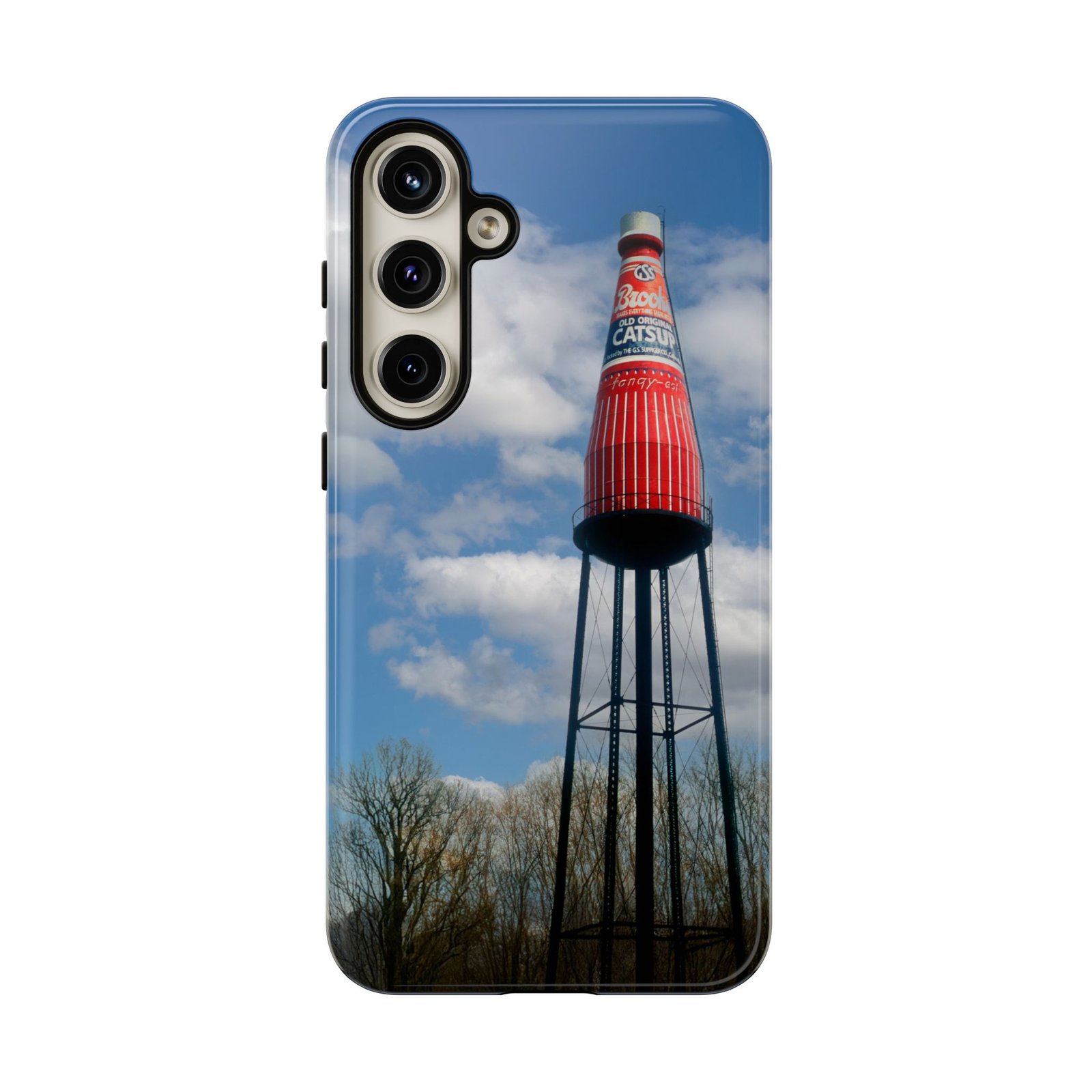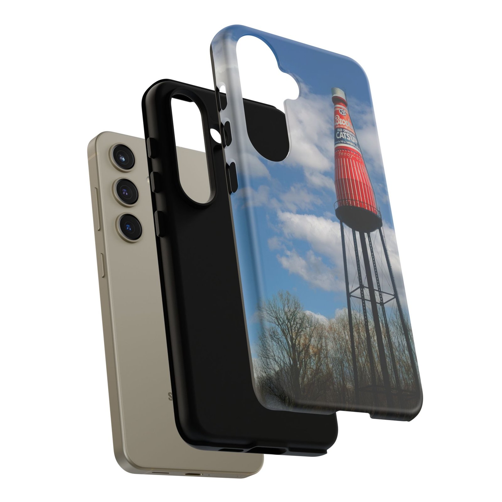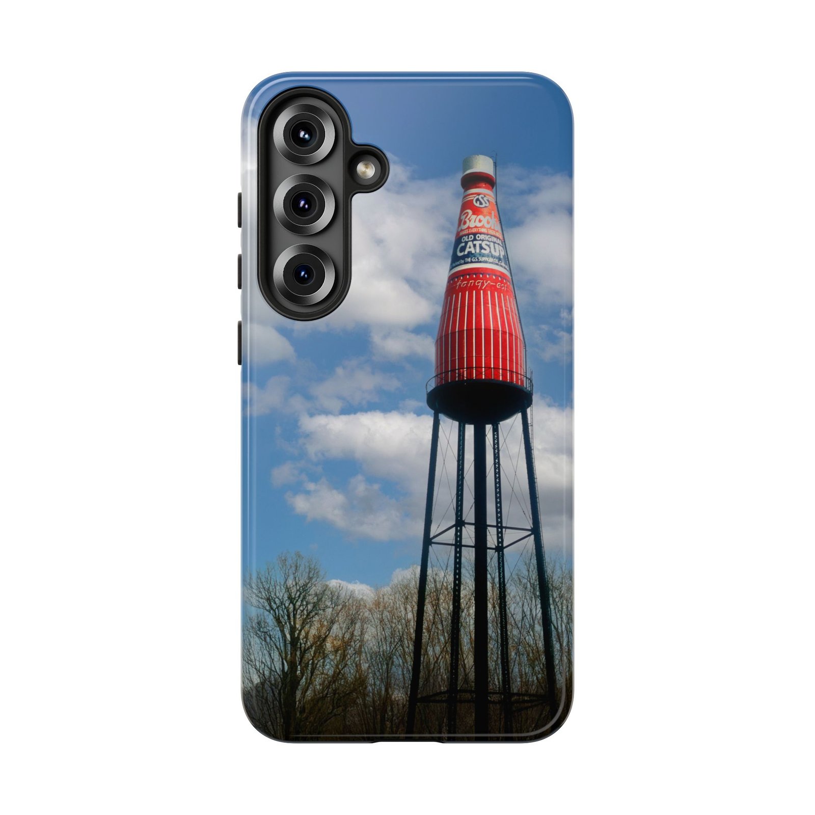 Ketchup Bottle Water Tower Design Phone tough phone case, iPhones and Samsung Galaxy phones, providing excellent protection against drops and tears. Perfect for adults looking to add a fun and quirky touch to their phone. Ideal for gifting on birthdays, holidays, and special occasions.