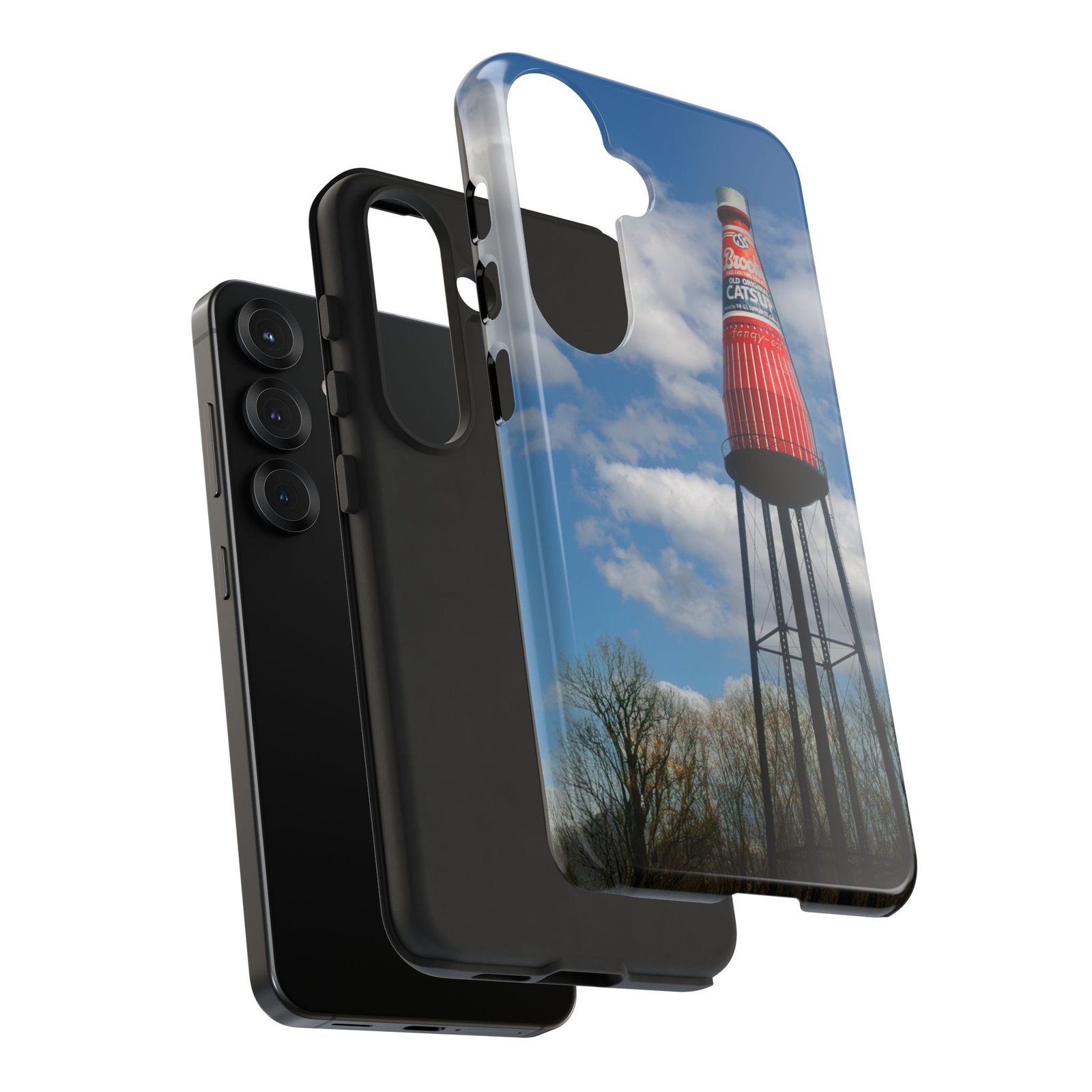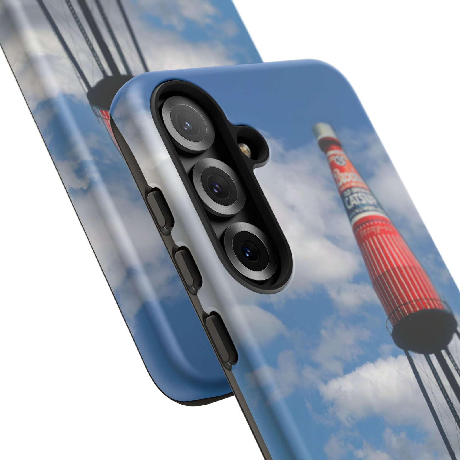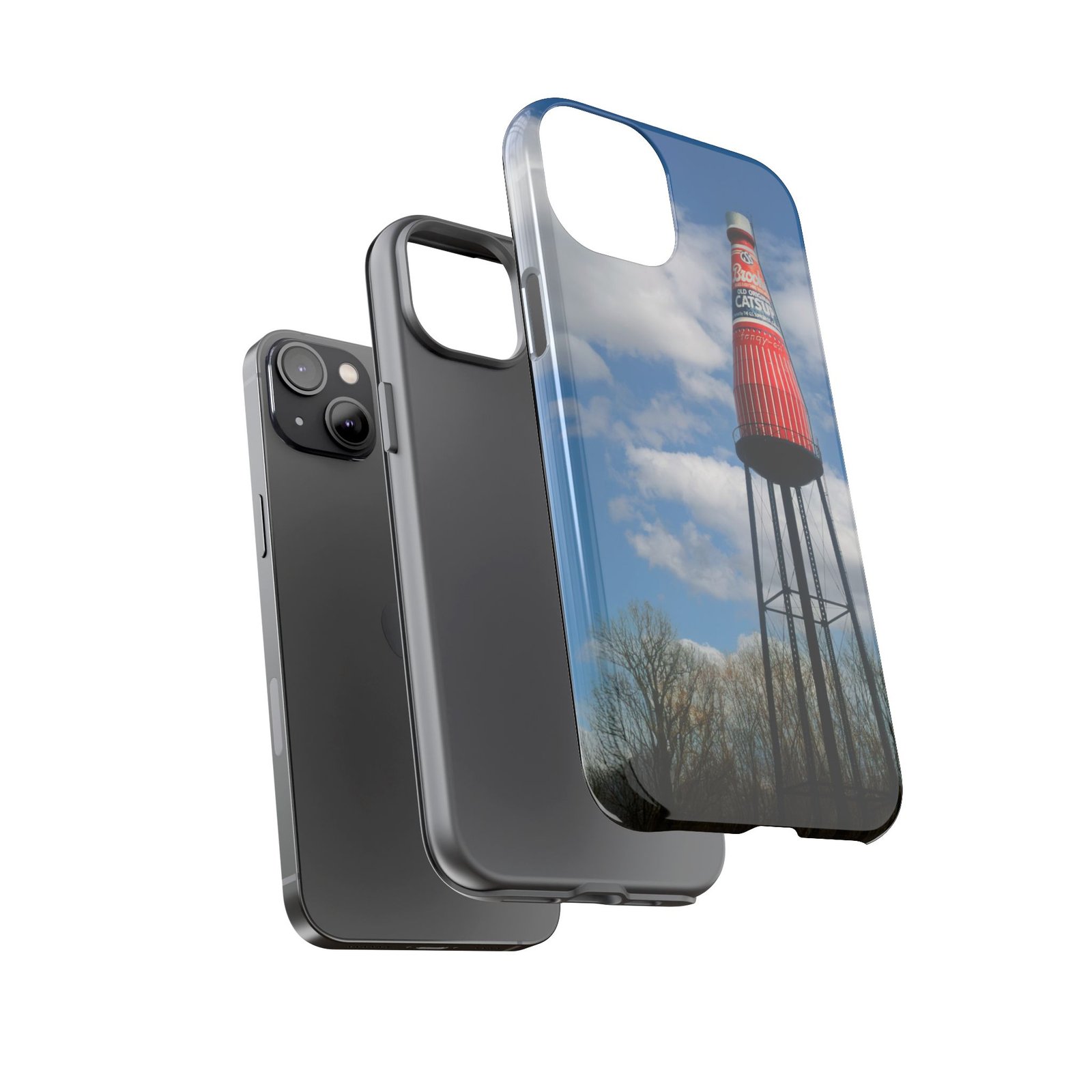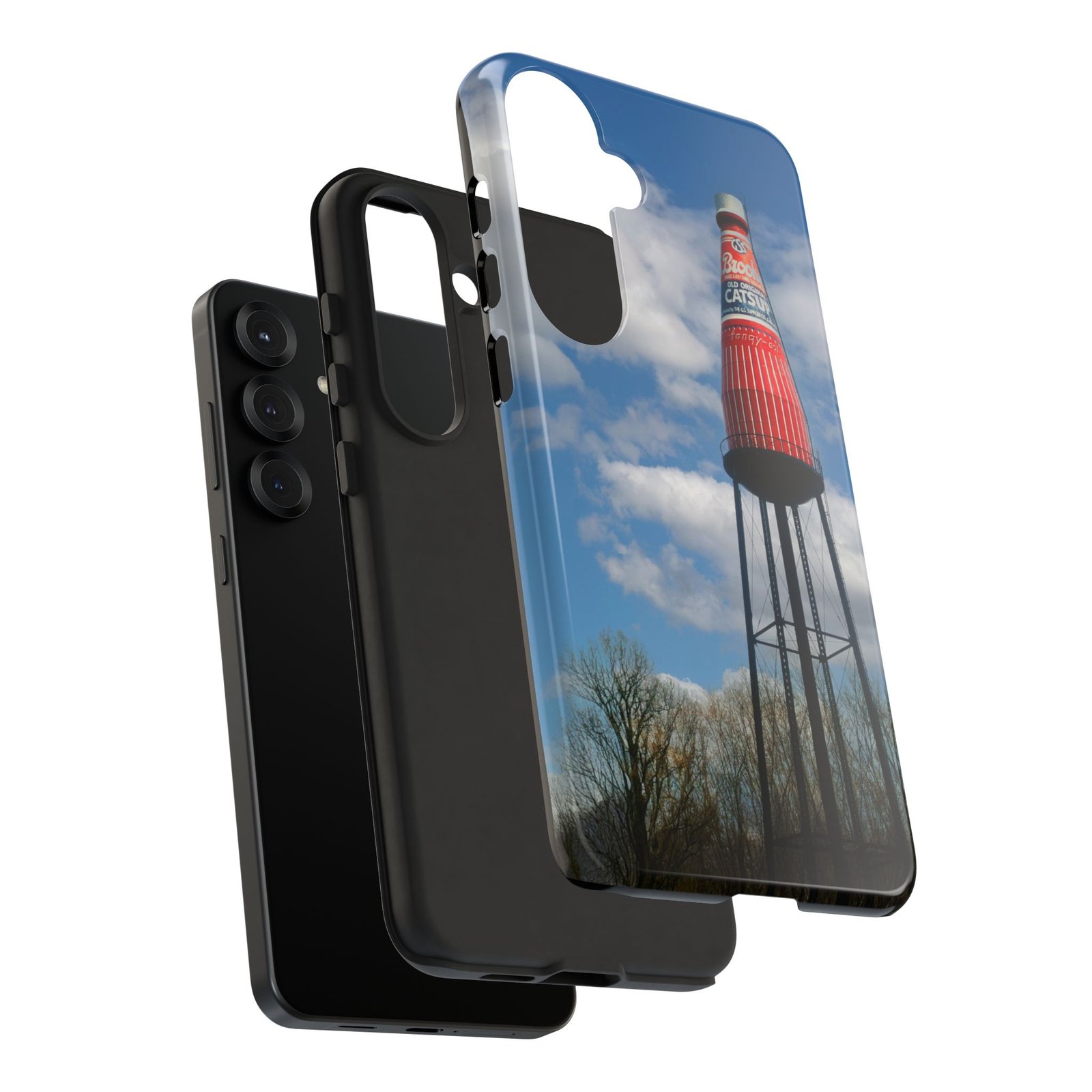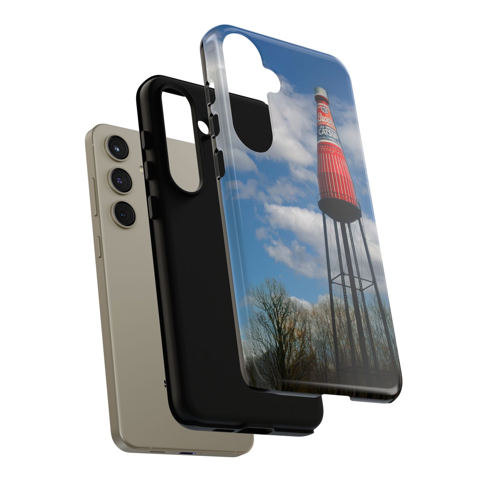 Ketchup Bottle Water Tower Design Phone tough phone case, iPhones and Samsung Galaxy phones, providing excellent protection against drops and tears. Perfect for adults looking to add a fun and quirky touch to their phone. Ideal for gifting on birthdays, holidays, and special occasions.
