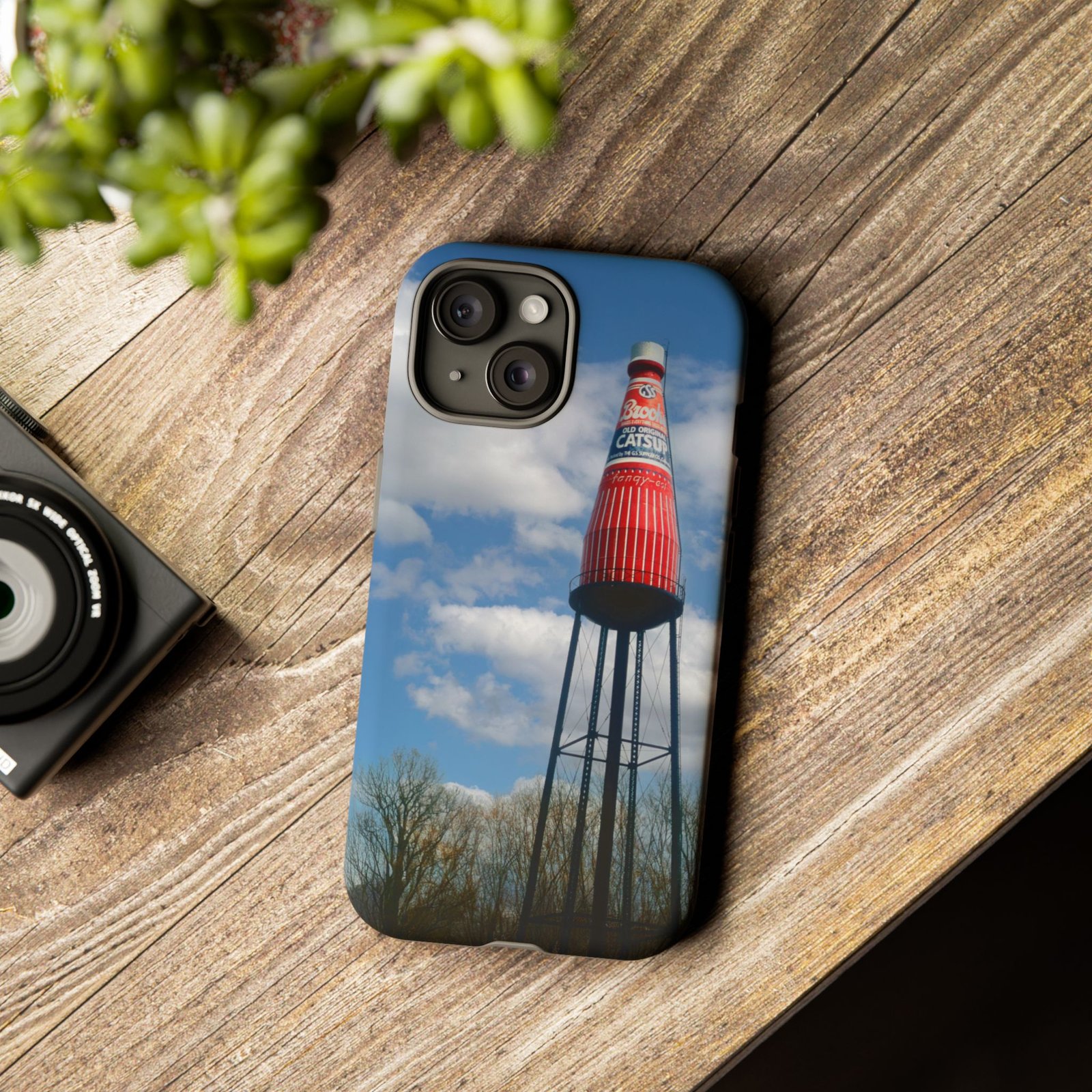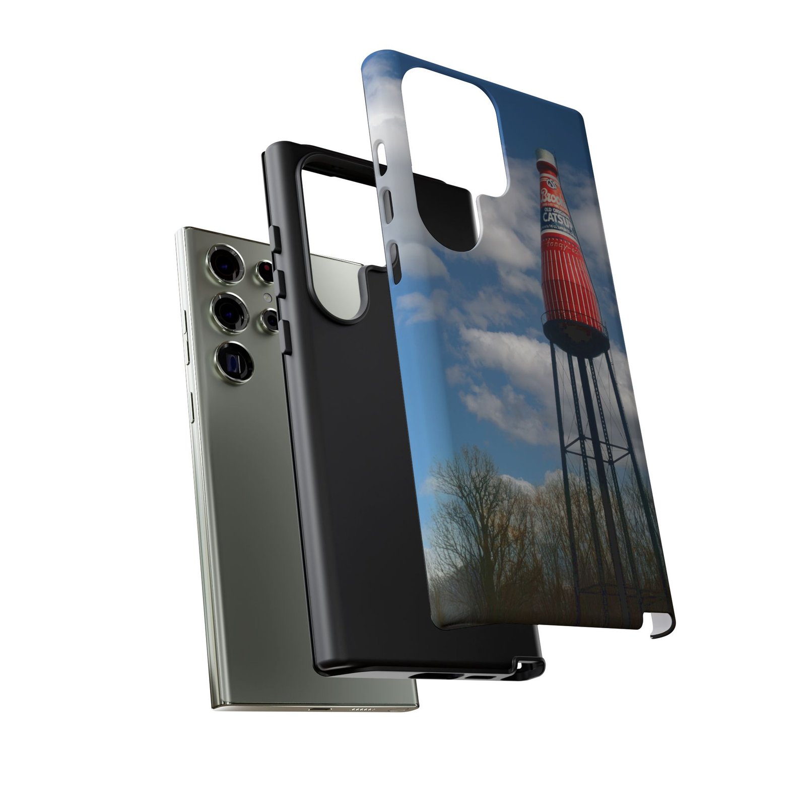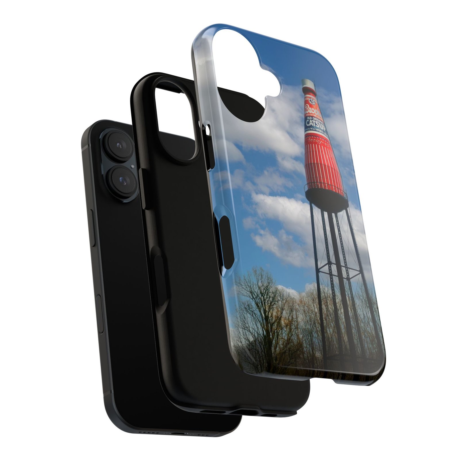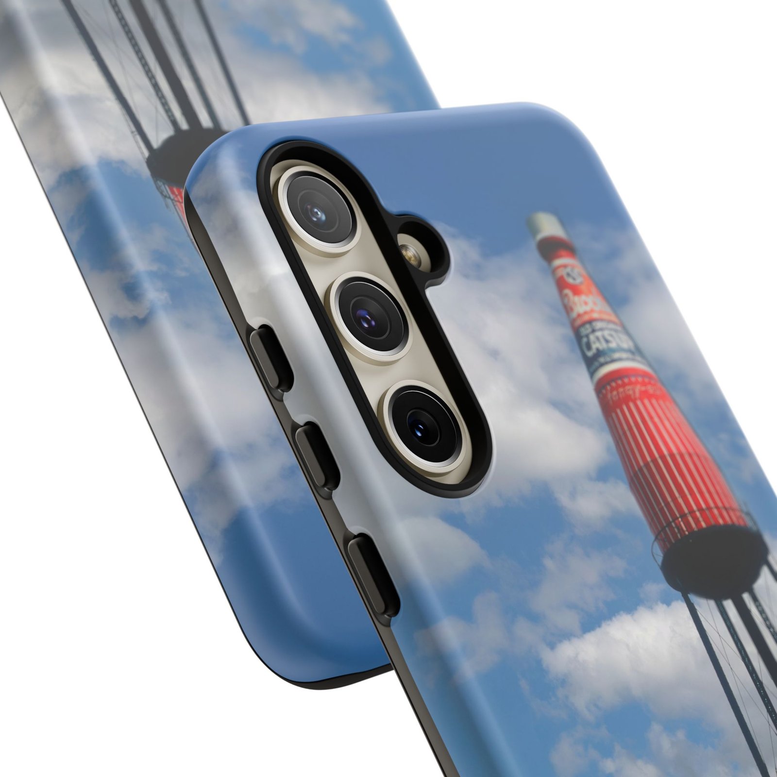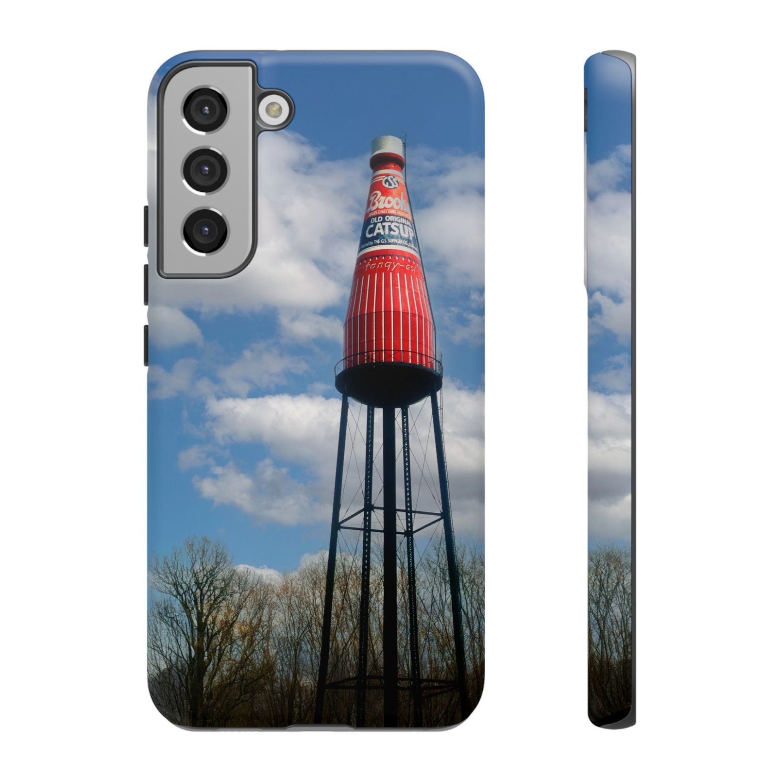 Ketchup Bottle Water Tower Design Phone tough phone case, iPhones and Samsung Galaxy phones, providing excellent protection against drops and tears. Perfect for adults looking to add a fun and quirky touch to their phone. Ideal for gifting on birthdays, holidays, and special occasions.