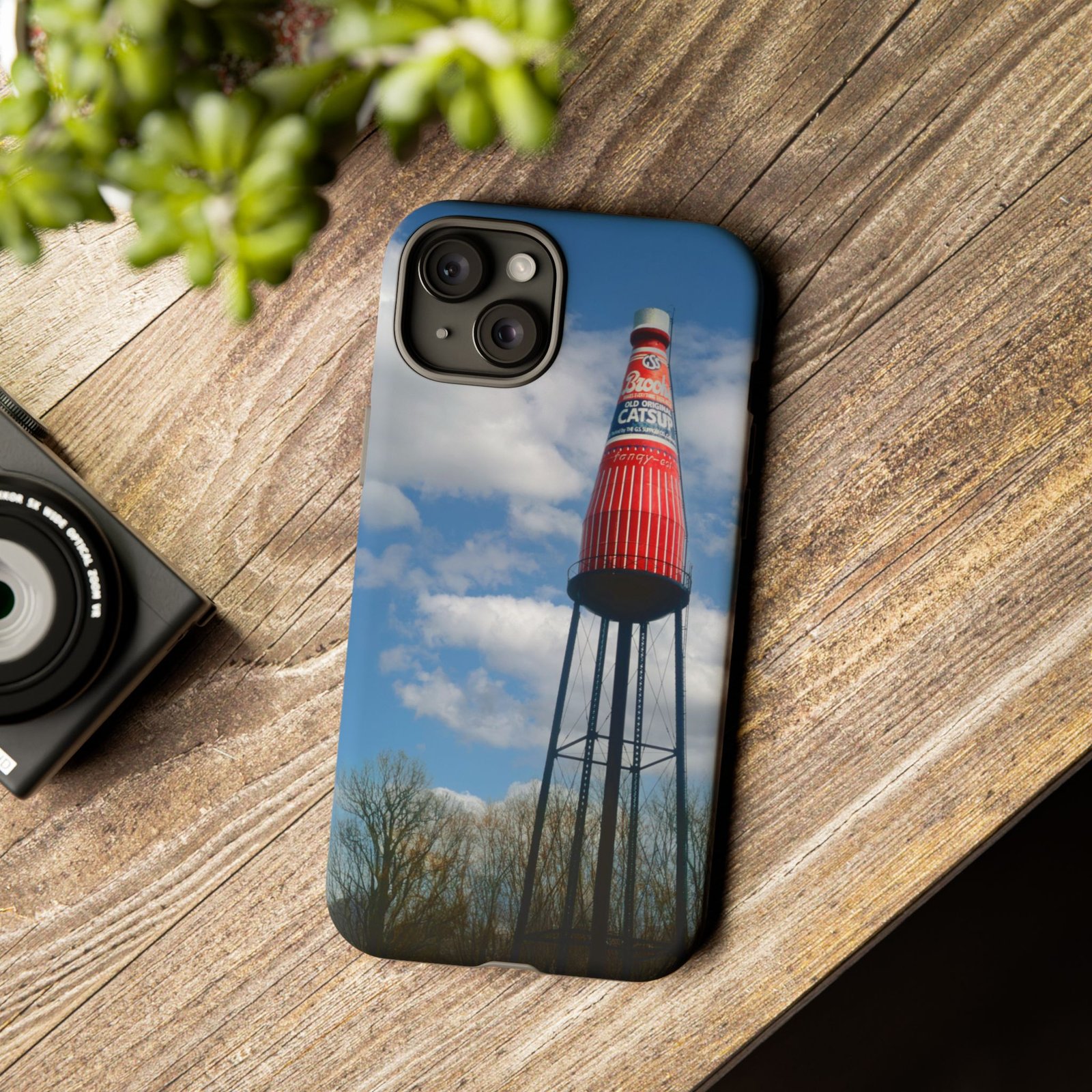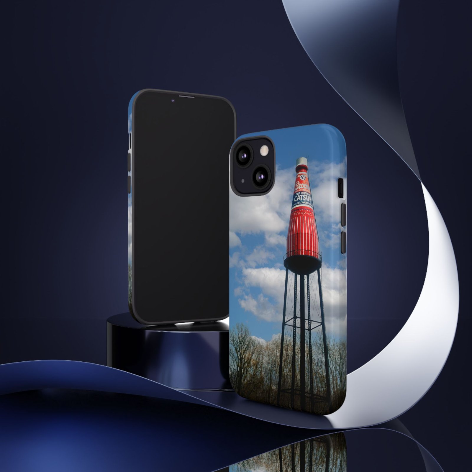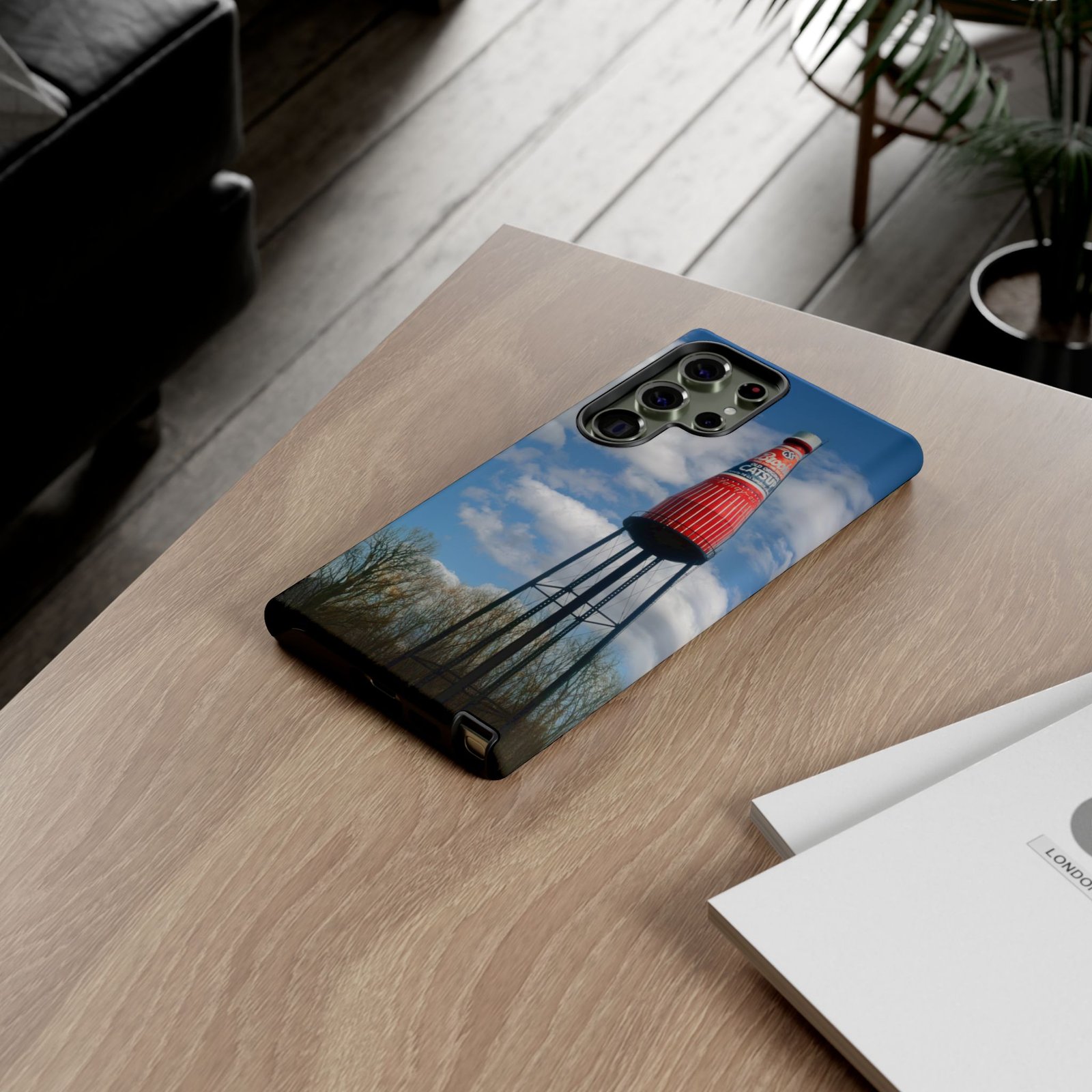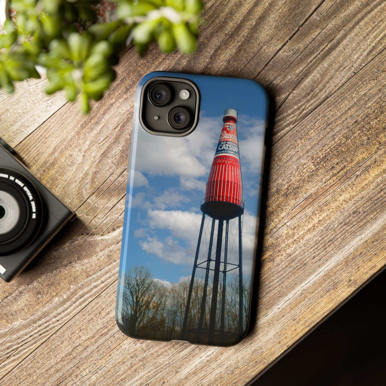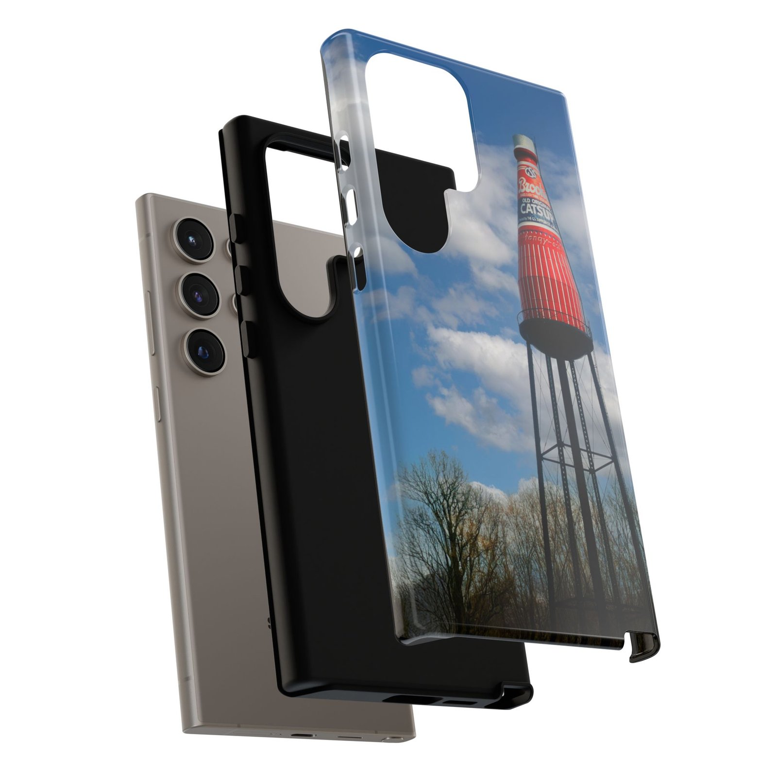 Ketchup Bottle Water Tower Design Phone tough phone case, iPhones and Samsung Galaxy phones, providing excellent protection against drops and tears. Perfect for adults looking to add a fun and quirky touch to their phone. Ideal for gifting on birthdays, holidays, and special occasions.